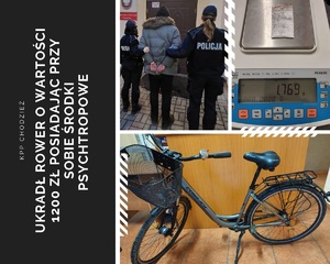 Mieszkaniec powiatu chodzieskiego dokonał kradzieży roweru marki Cossack z terenu Parafii pod wezwaniem św.Wojciecha w miejscowości Margonin. Podczas podjętych ustaleń i ujęcia sprawa przestępstwa posiadał przy sobie środki psychtropowe w postaci amfetaminy.