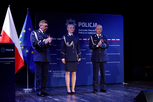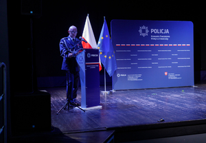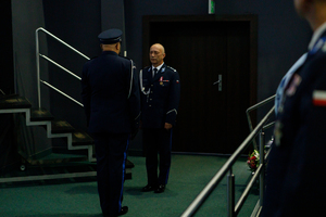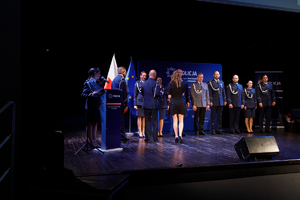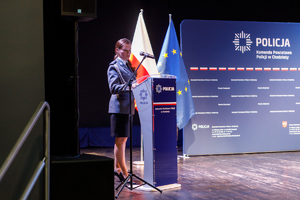 Zastępca Komendanta Wojewódzkiego Policji w Poznaniu insp. Tomasz Barłożek w swoim wystąpieniu podziękował policjantom i pracownikom za ich codzienny trud i wkład. Zwrócił się także do Pań, które w tym roku obchodzą wyjątkowe święto i podziękował im za ich obecność w naszej formacji. Słowa podziękowania i uznania skierował także do rodzin policjantów.