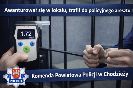 Nietrzeźwy mężczyzna, który zakłócał porządek w jednym z lokali gastronomicznych na terenie Chodzieży, zakończył interwencję w policyjnym areszcie.